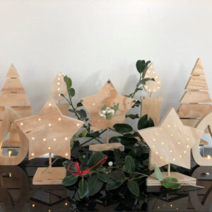 Houten kerstboom met warm witte draadled verlichting (27 cm)
