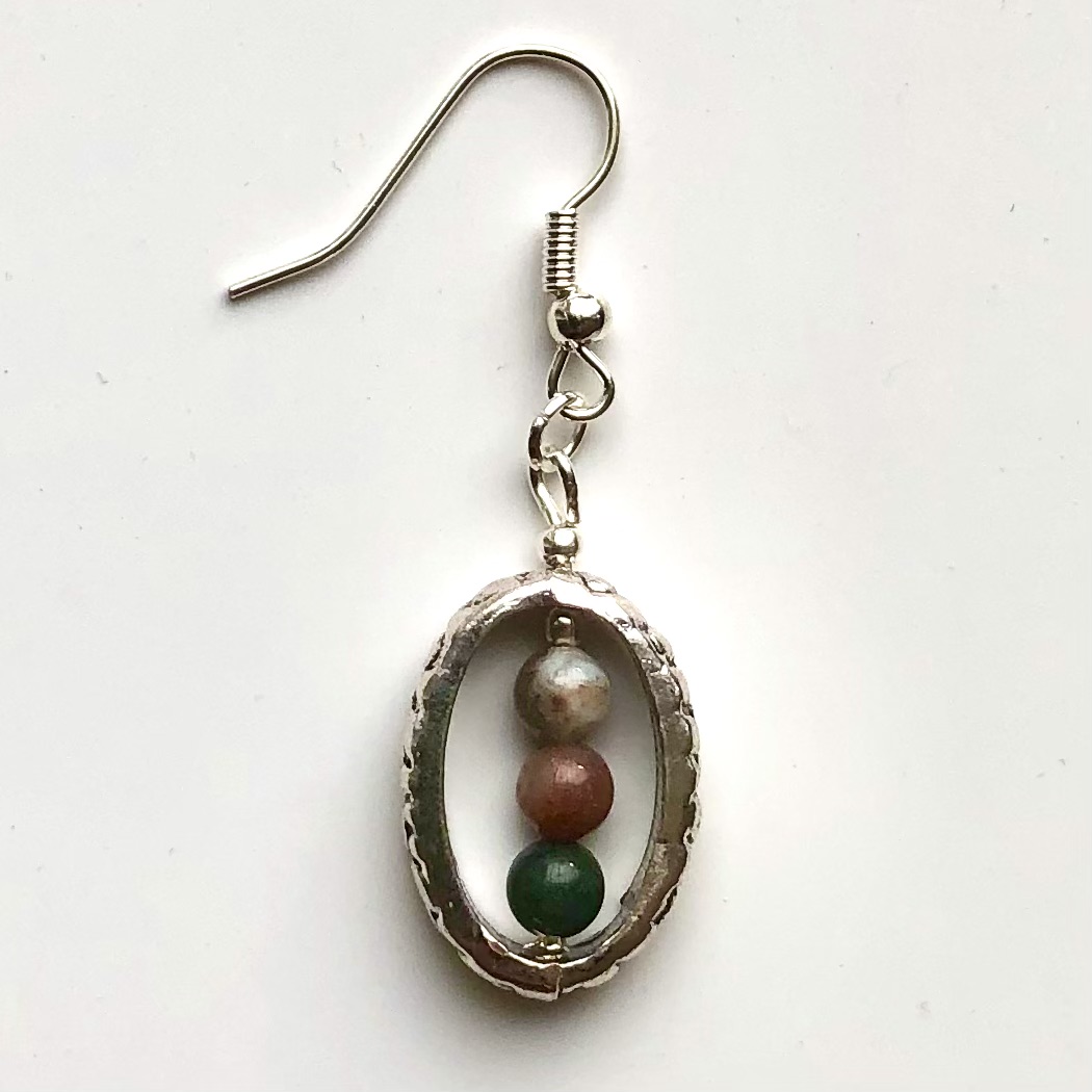 Oorbellen met 3 kralen agaat in ovaal frame