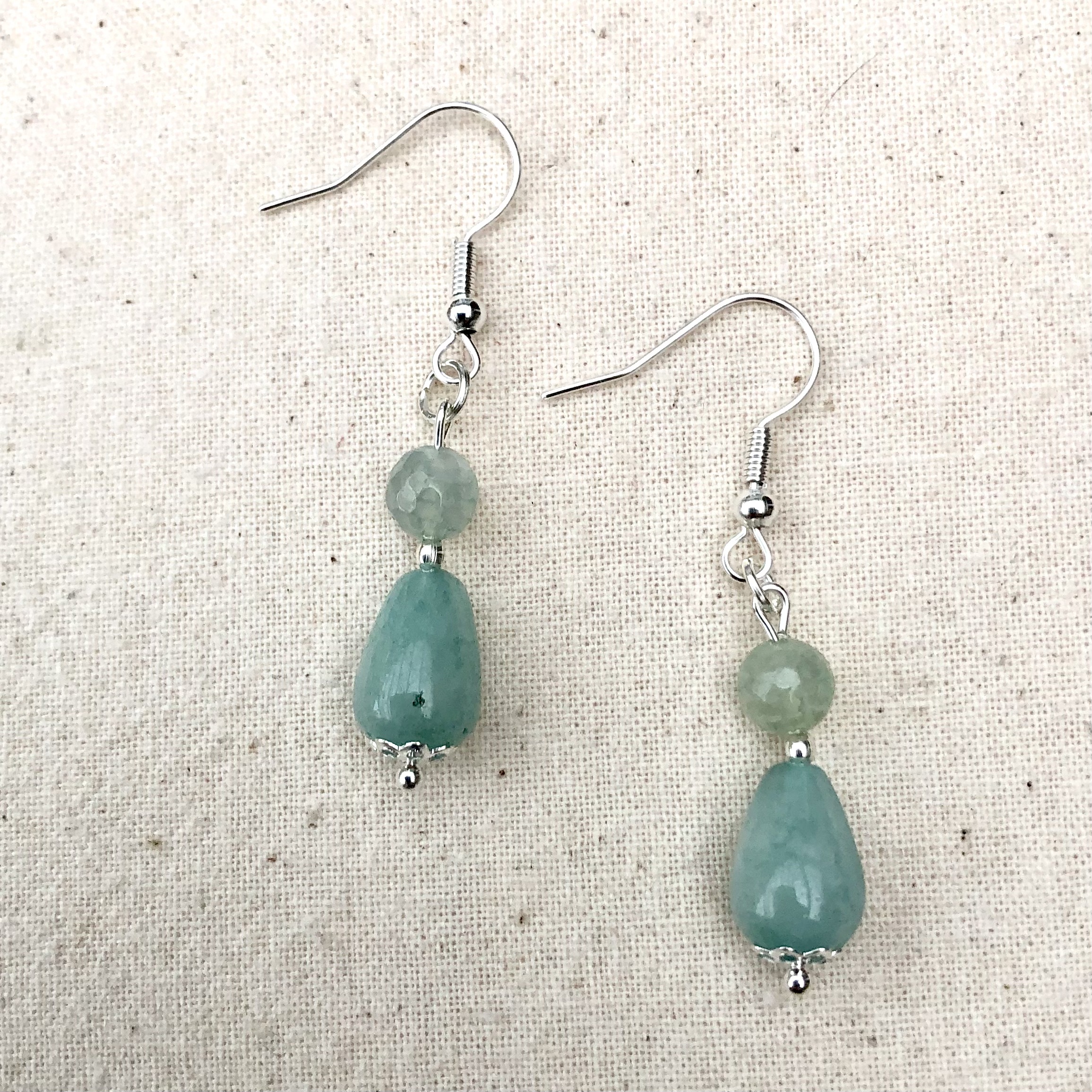 Halfedelsteen: amazoniet (druppelvorm), agaat (rond met facetjes)