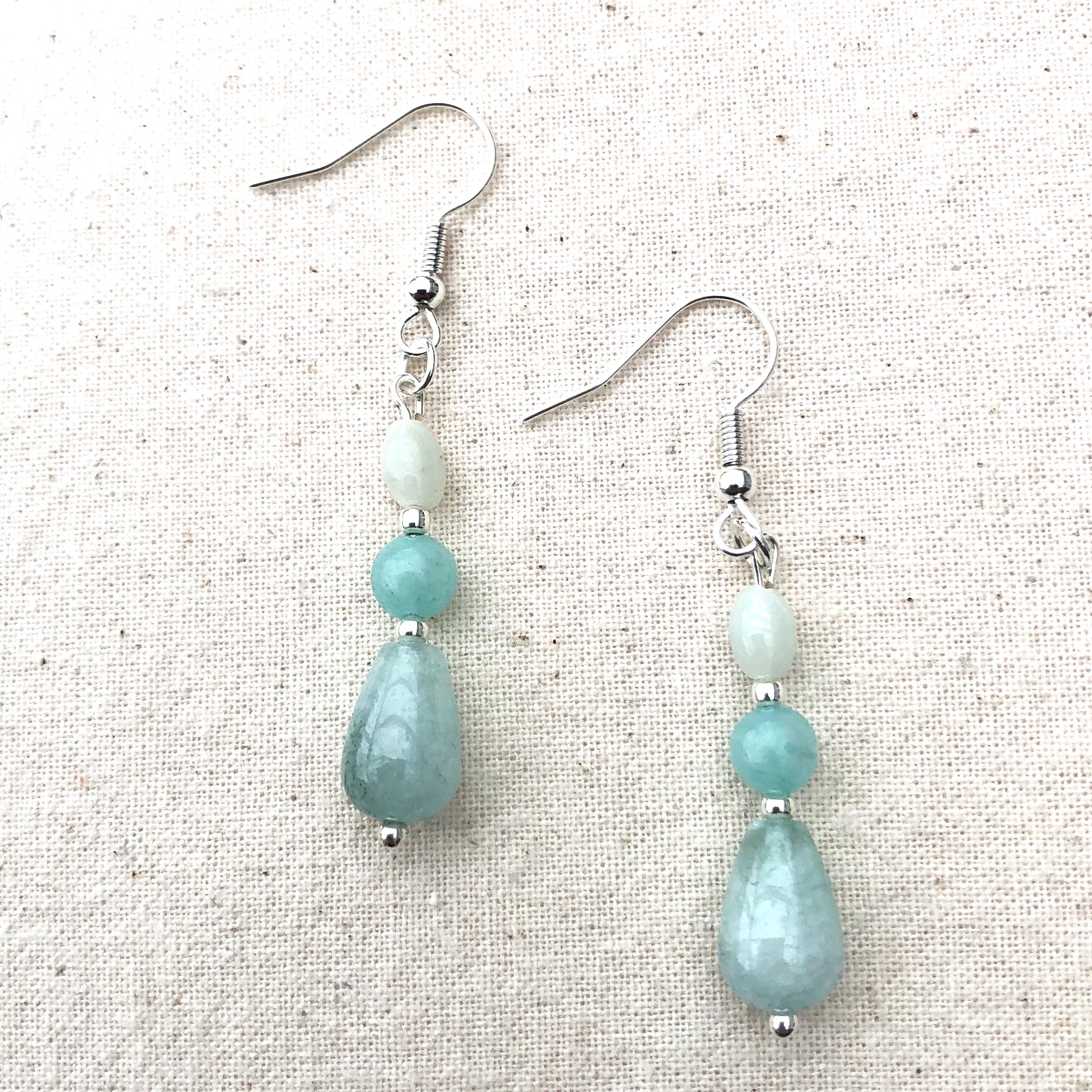 Halfedelsteen: amazoniet (druppelvorm en rond)