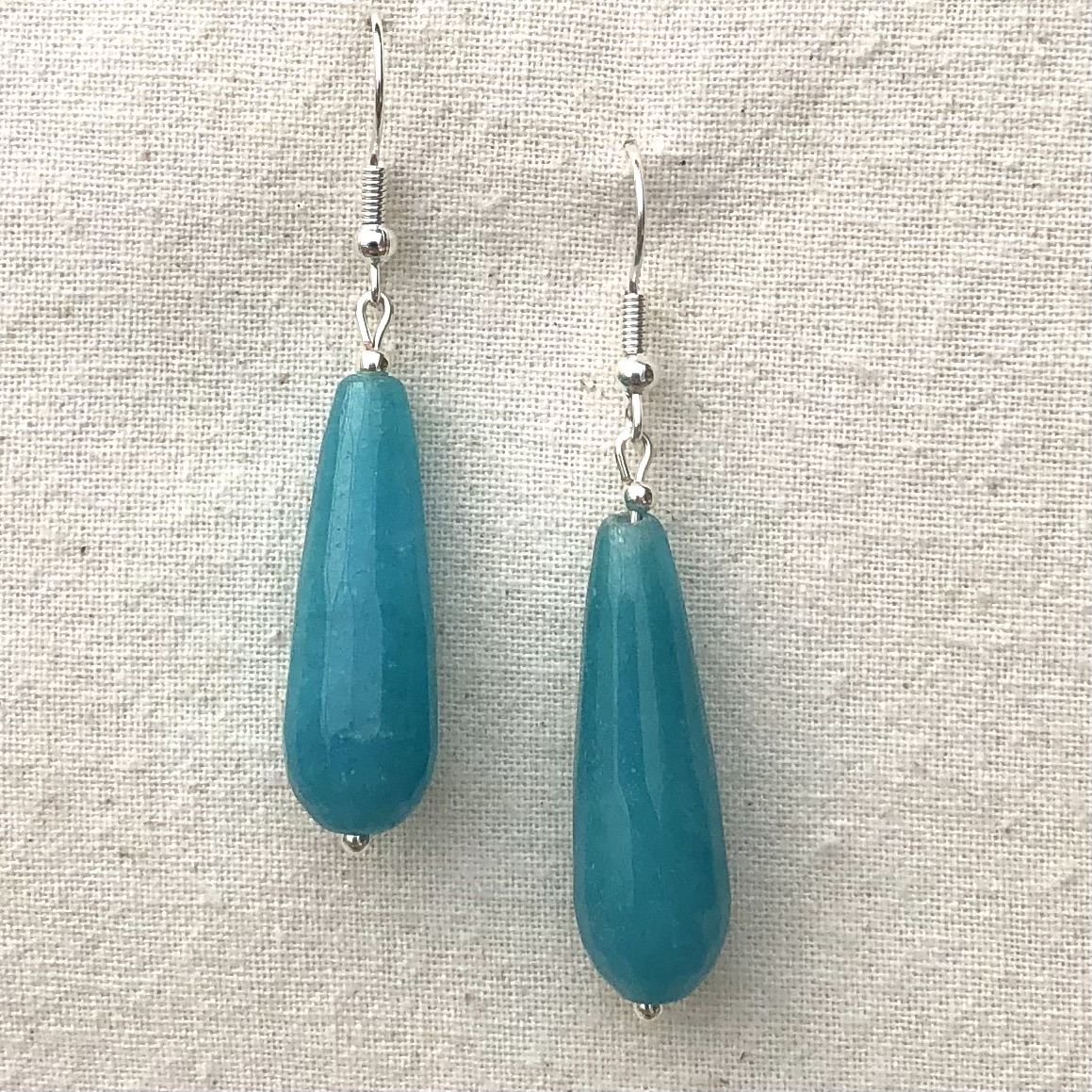 Halfedelsteen: blauwe angeliet, kegelvormig, facet geslepen, lengte van de steen 30 mm